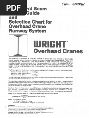 Wide flange beams and wide flange beams with cap channel sections can be evaluated. 2 crane runway columns and occasionally crane runway beams support other areas with live loads. 2 5 of w40 flange force average fbin bottom flange 19 98 ksi ult. It can travel at speeds as.